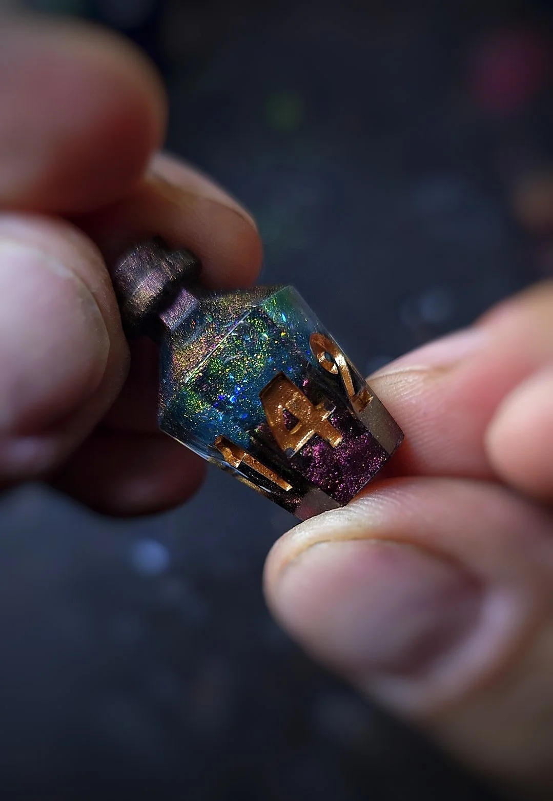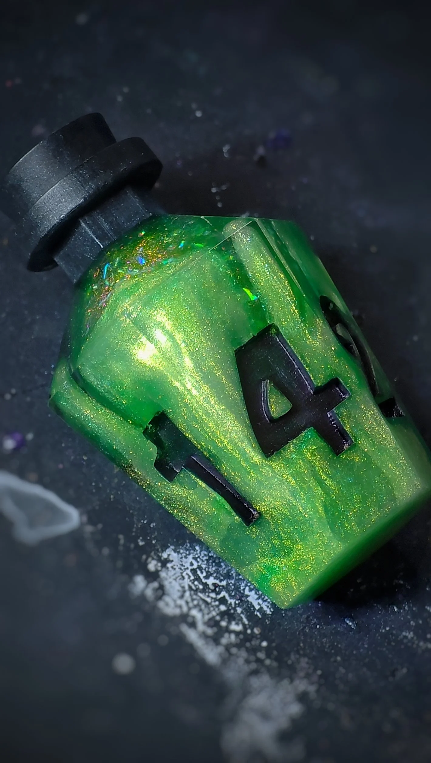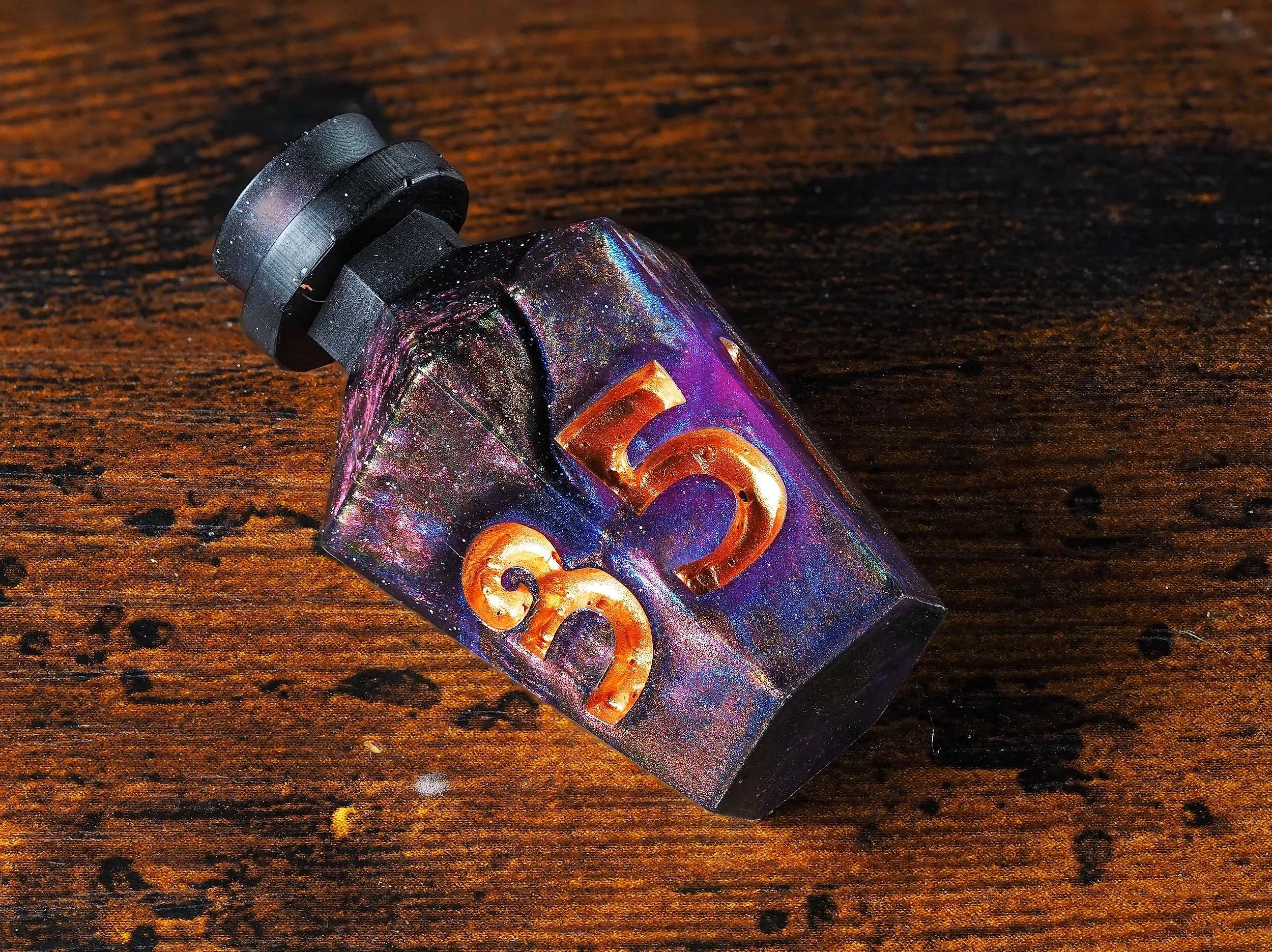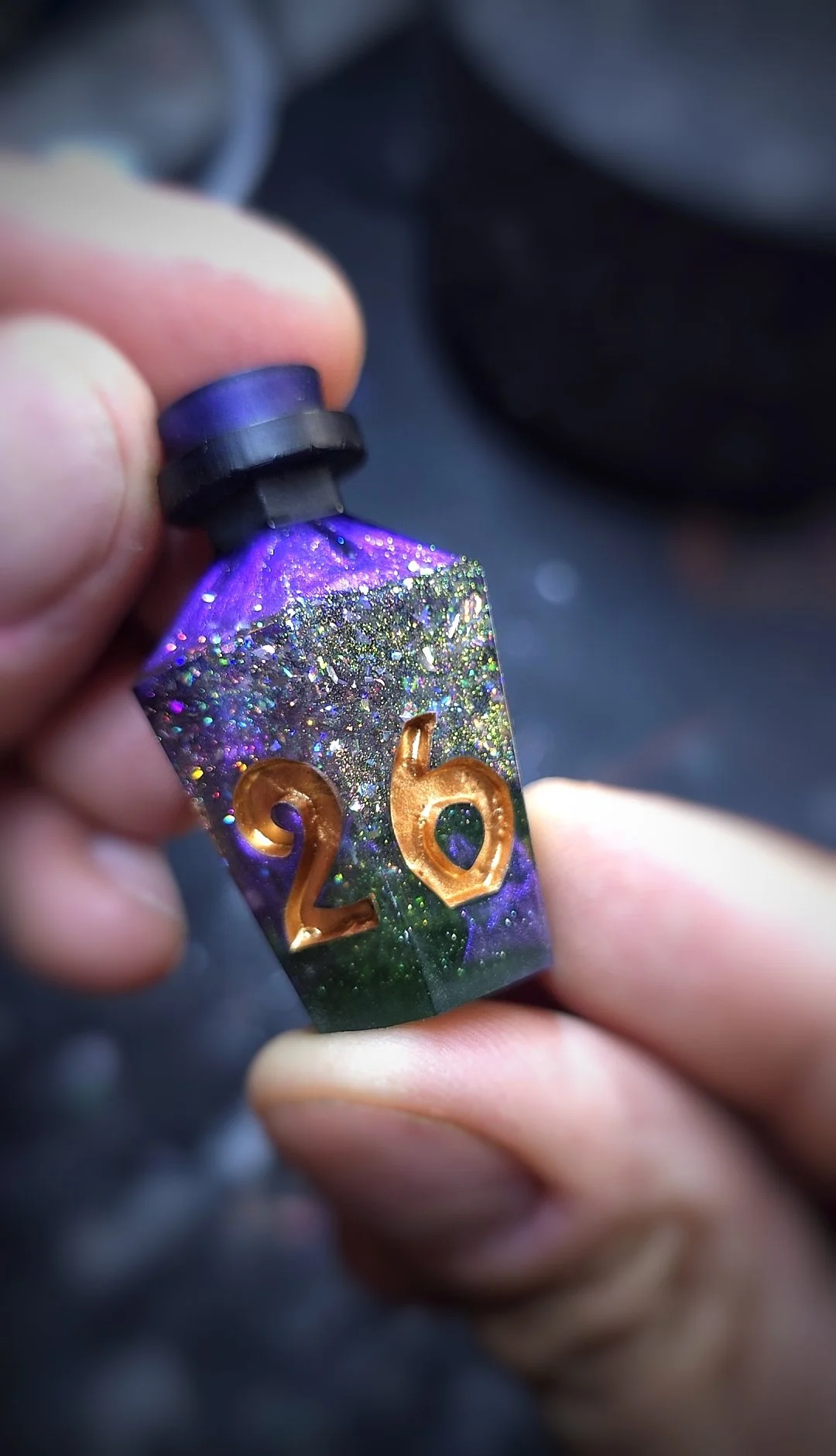 These dice are completely handmade from start to finish. My master dice and molds are also made by myself. Each individual set is unique and takes several hours to complete. Quality comes first when preparing the Sets for their new home, So that your dice are noticed from across the room.