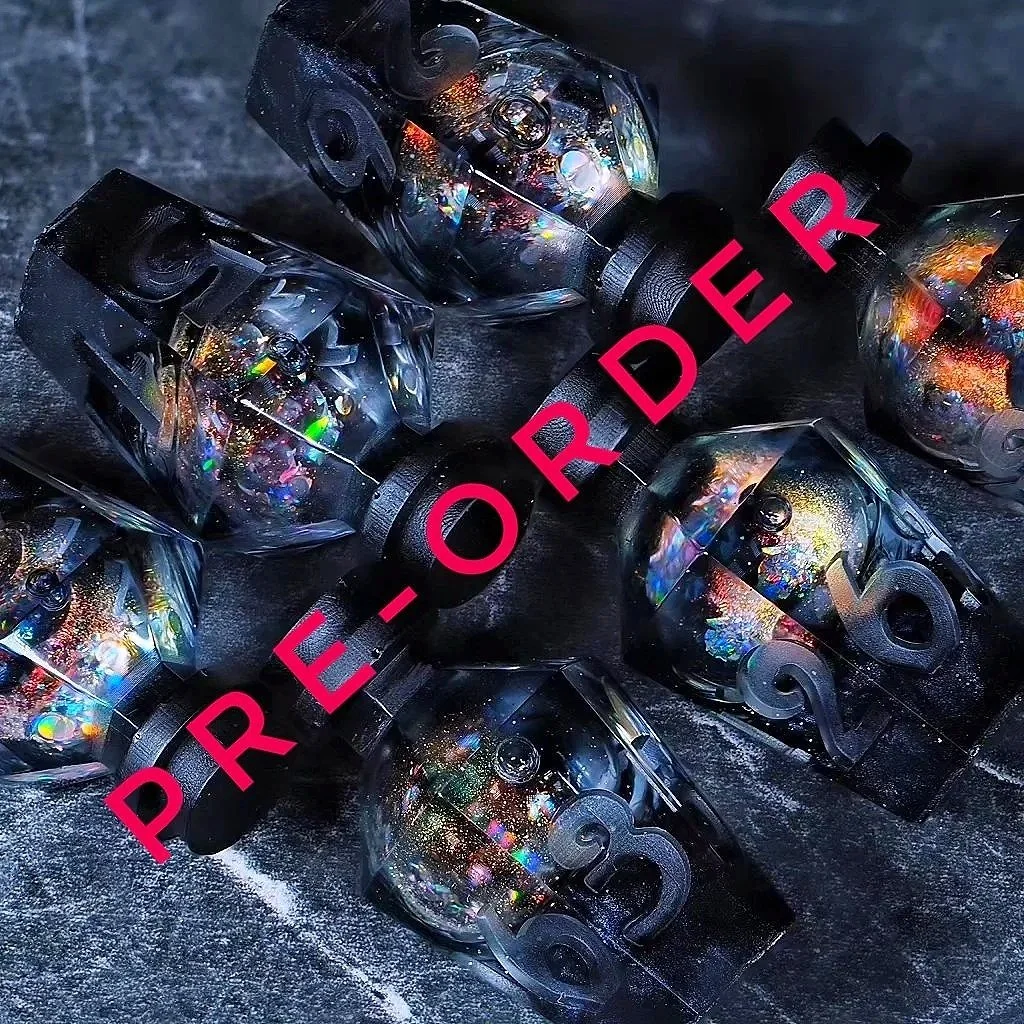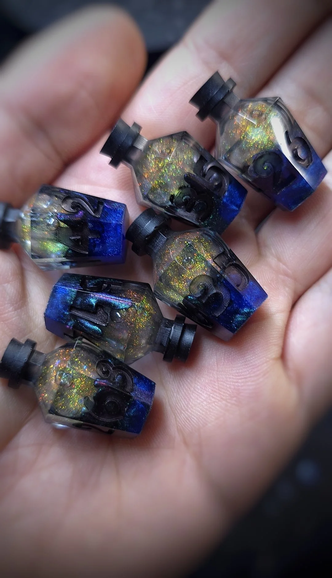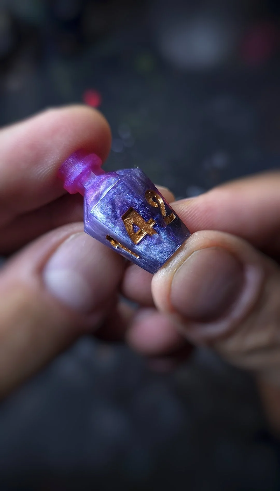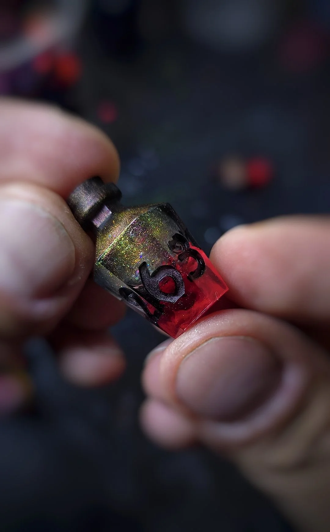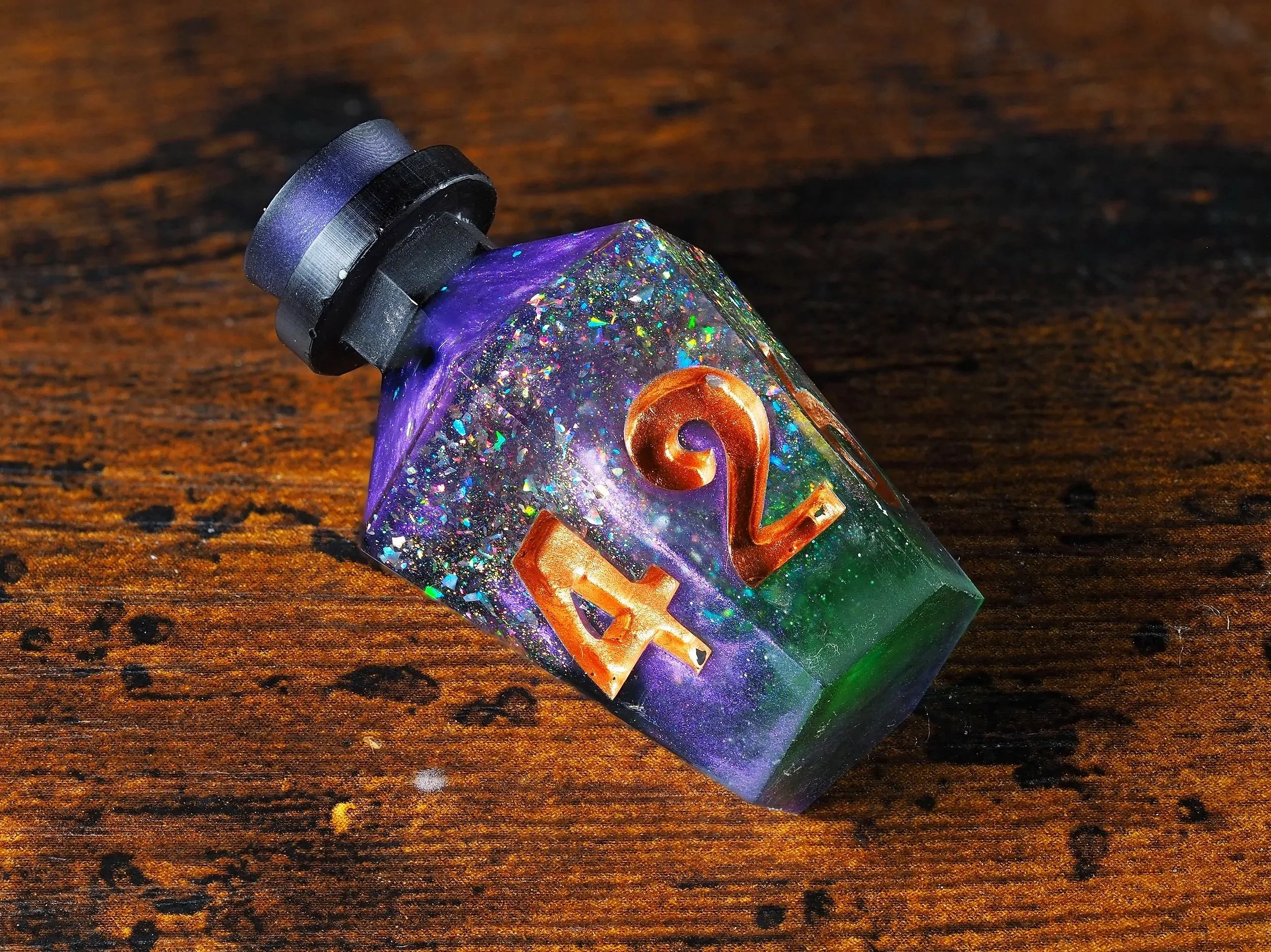 These dice are completely handmade from start to finish. My master dice and molds are also made by myself. Each individual set is unique and takes several hours to complete. Quality comes first when preparing the Sets for their new home, So that your dice are noticed from across the room.