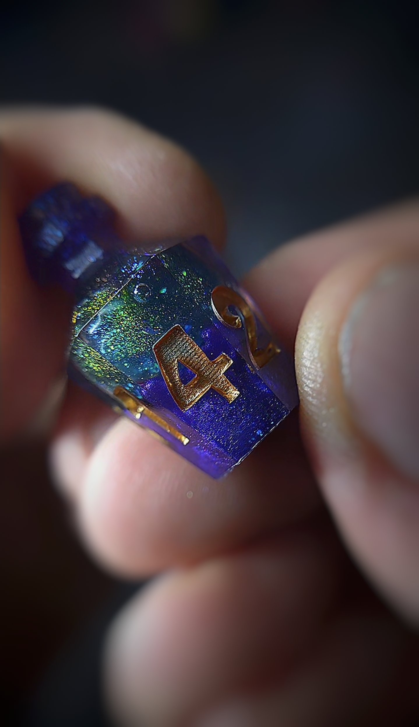 These dice are completely handmade. As such, there may be minor flaws such as mold marks, flashing lines, minor surface bubbles, etc. My work is not flawless, but I do my best to reduce any flaws as much as possible.
